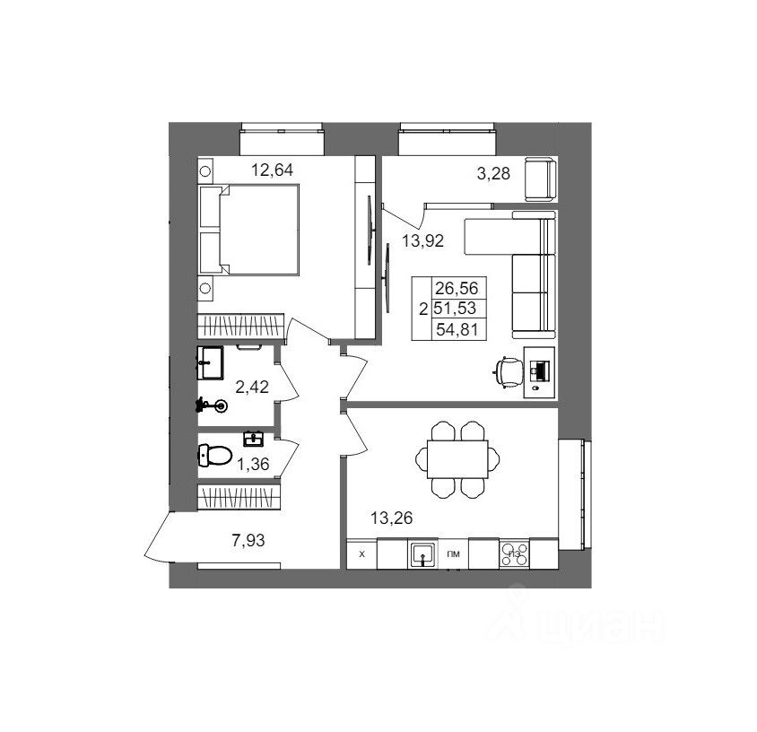 56 м² · Этаж 9 из 9