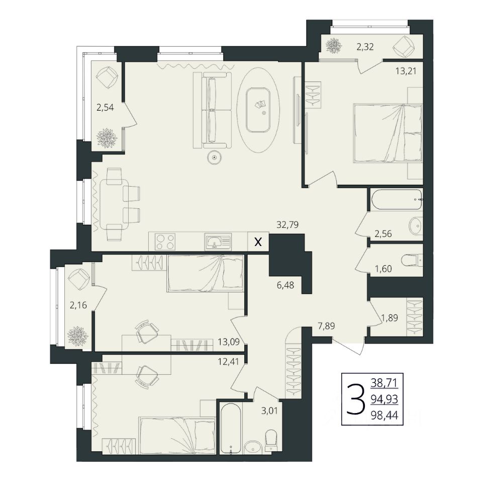 Трехкомнатные