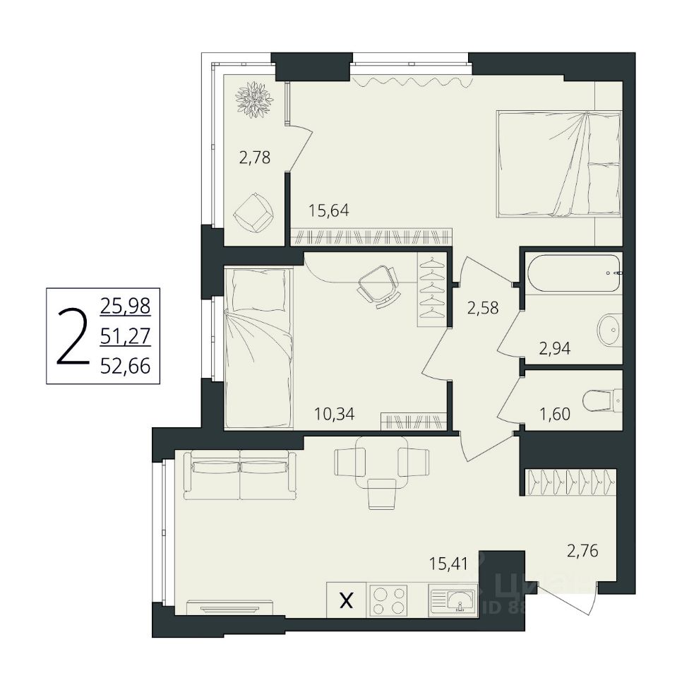 52 м² · Этаж 2 из 17