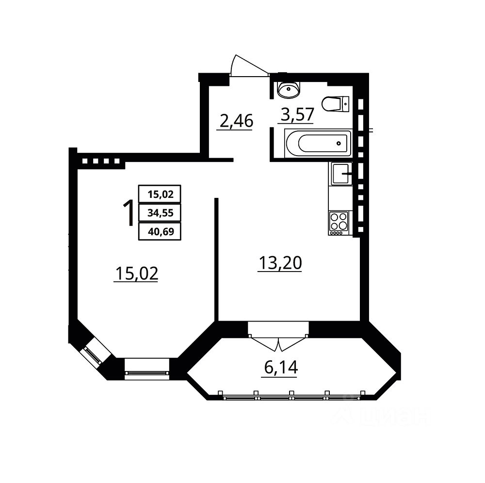 57 м² · Этаж 15 из 16
