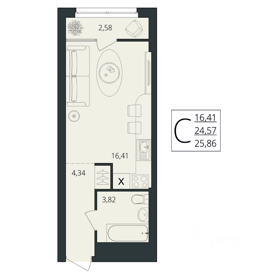 25 м² · Этаж 4 из 17