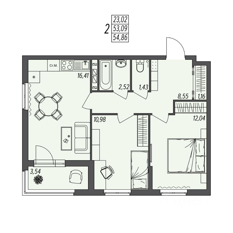 54 м² · Этаж 8 из 10