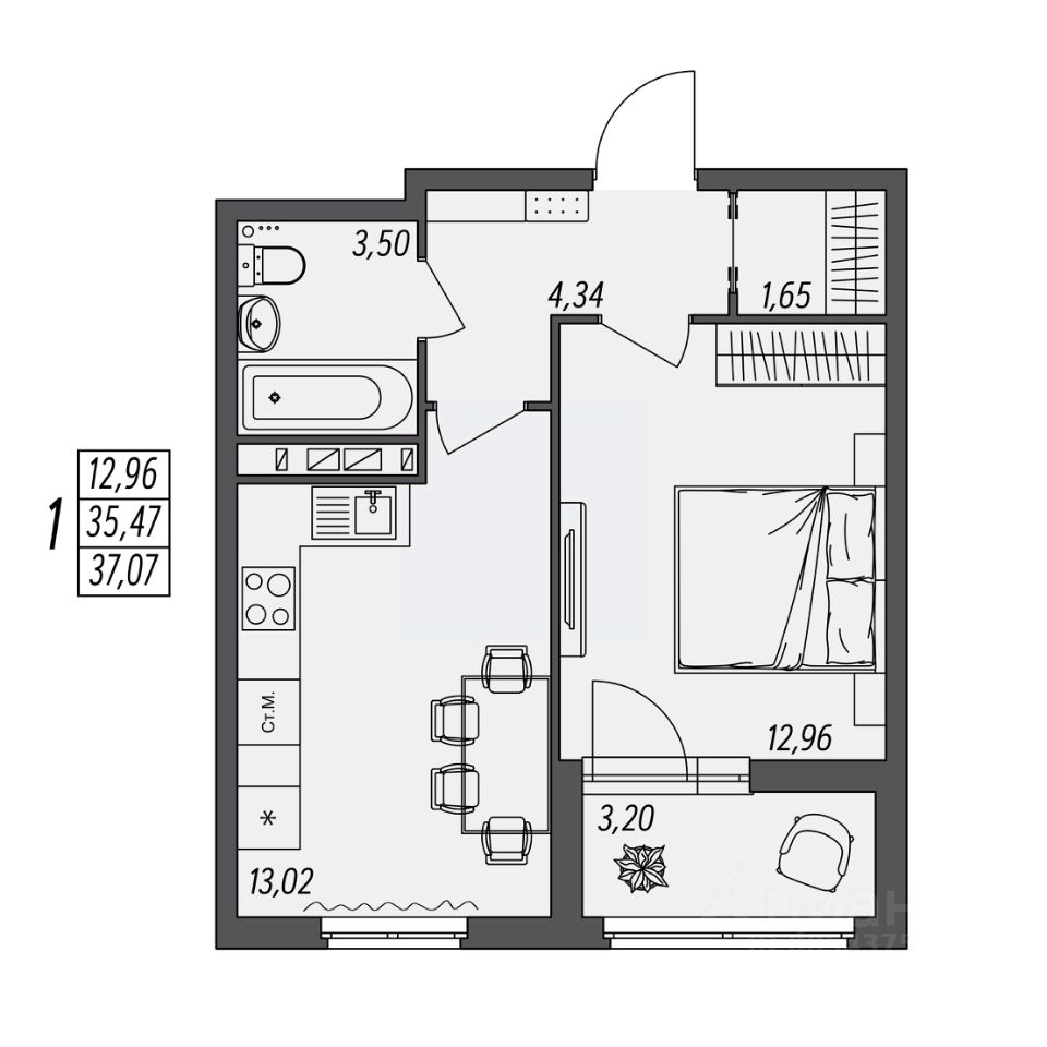 34 м² · Этаж 3 из 10