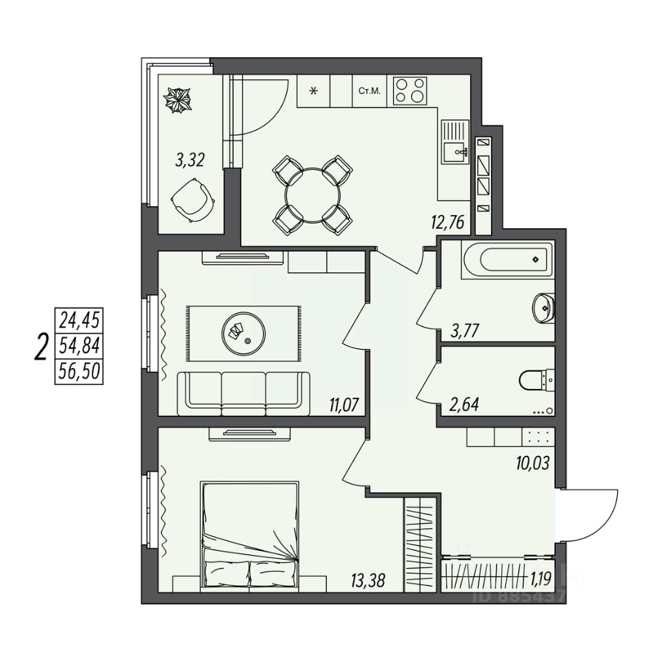 56 м² · Этаж 2 из 10