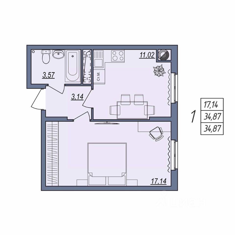 34 м² · Этаж 4 из 10