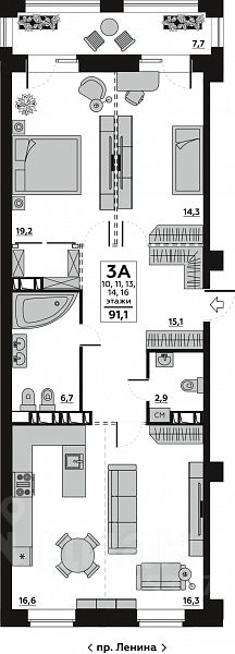 39 м² · Этаж 7 из 9