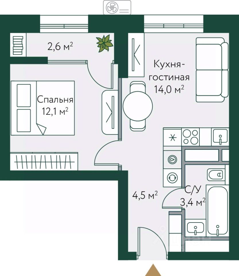 42 м² · Этаж 2 из 24