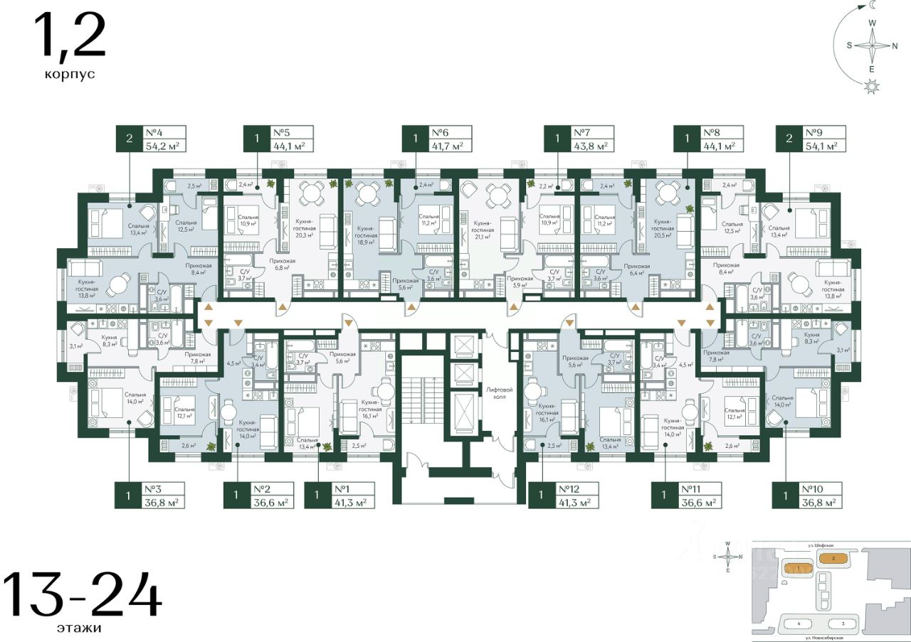 44 м² · Этаж 13 из 24