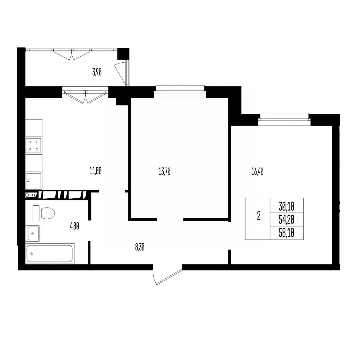 58 м² · Этаж 16 из 17