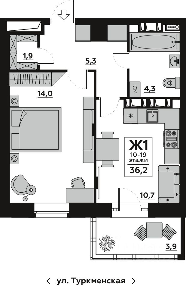 36 м² · Этаж 14 из 24