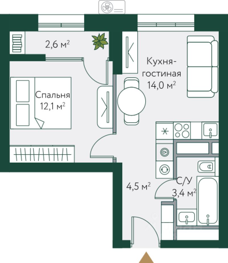 44 м² · Этаж 2 из 24
