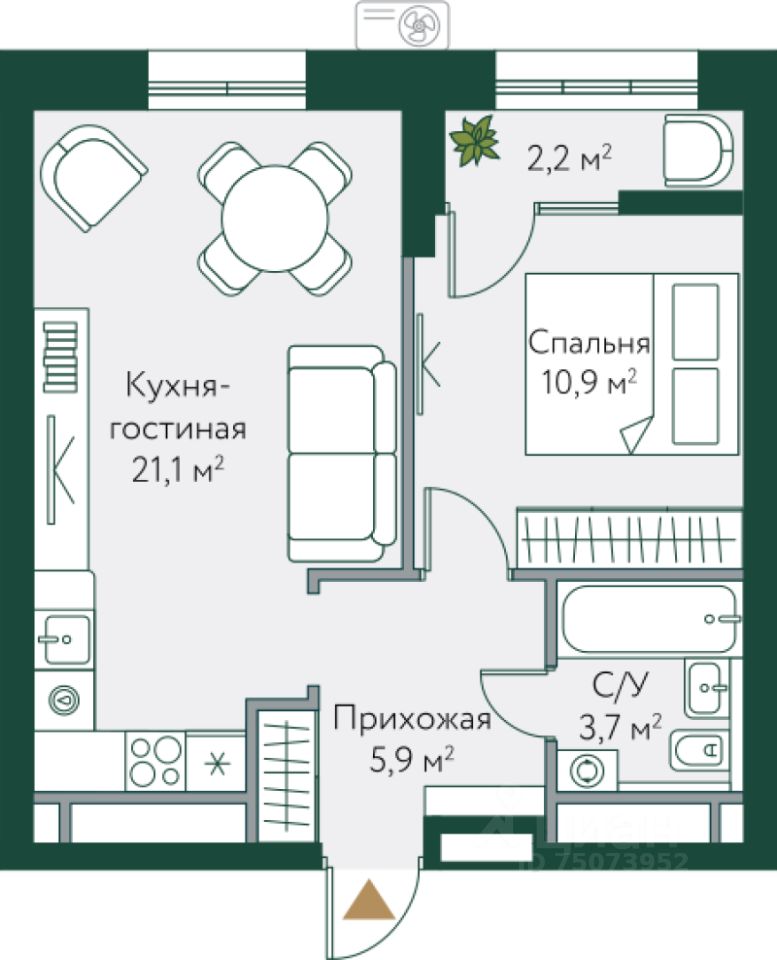 54 м² · Этаж 21 из 24