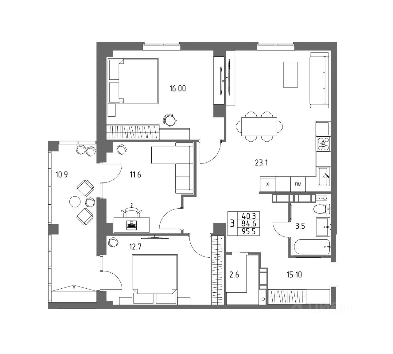 95 м² · Этаж 16 из 17