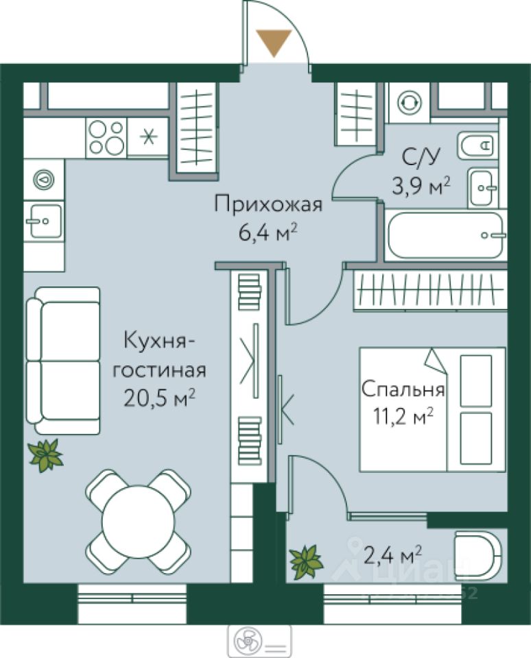 54 м² · Этаж 20 из 24