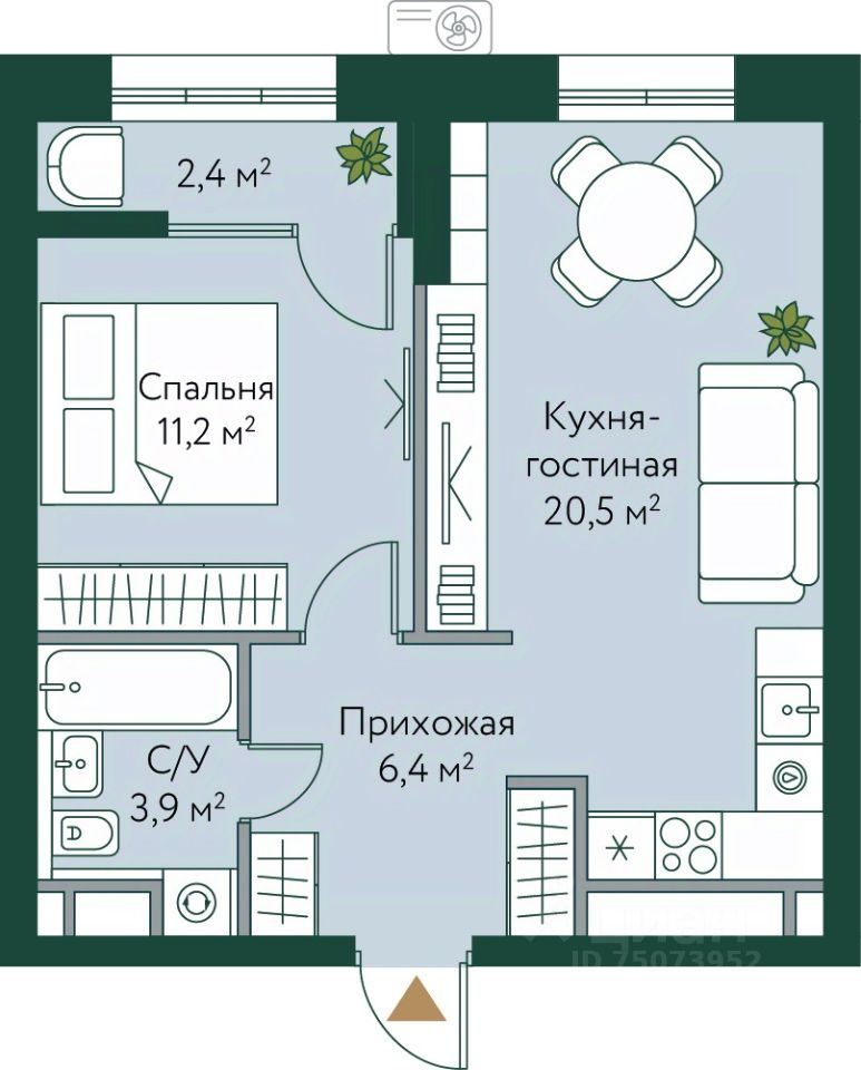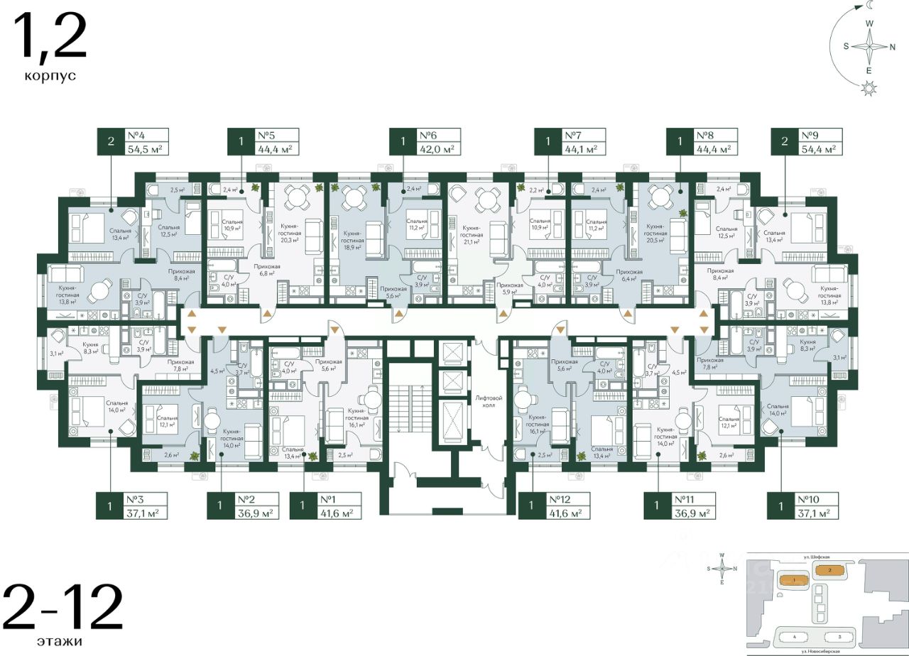54 м² · Этаж 12 из 24