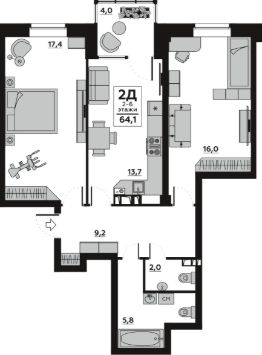 64 м2