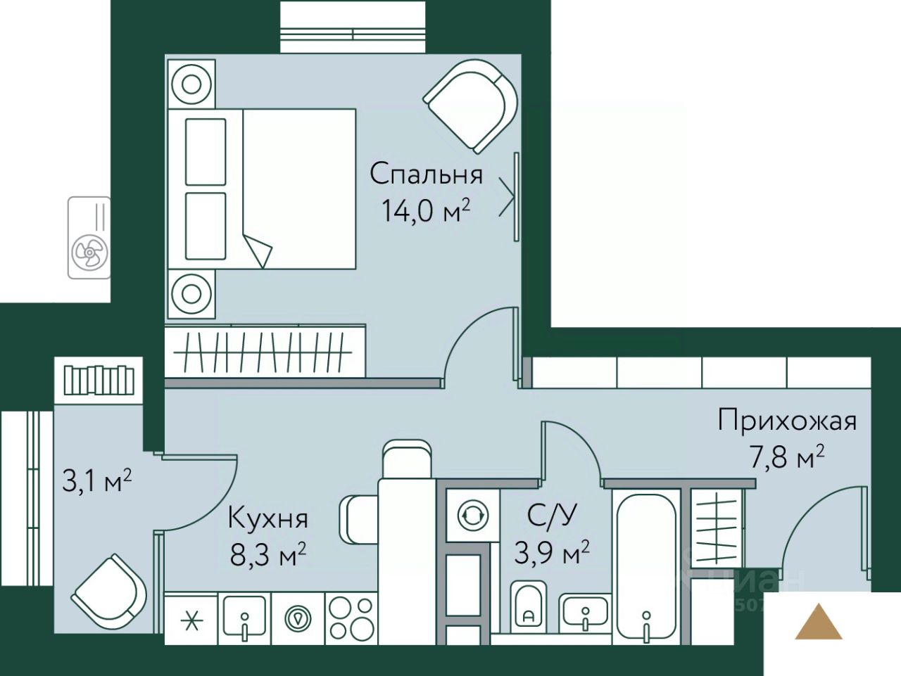 44 м² · Этаж 8 из 24