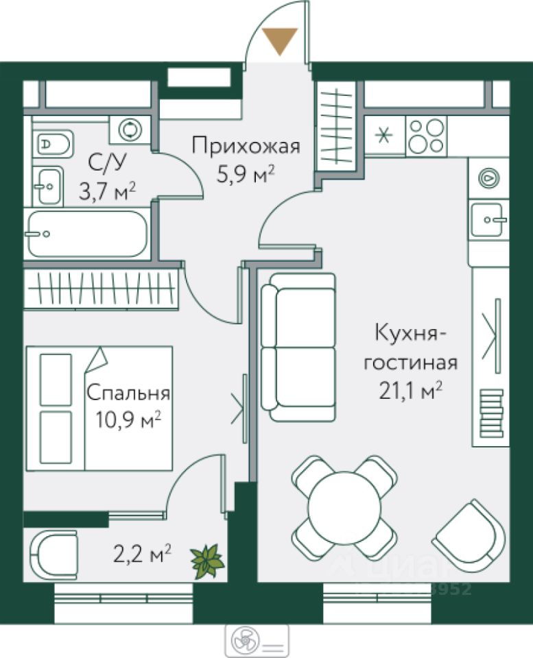 54 м² · Этаж 21 из 24