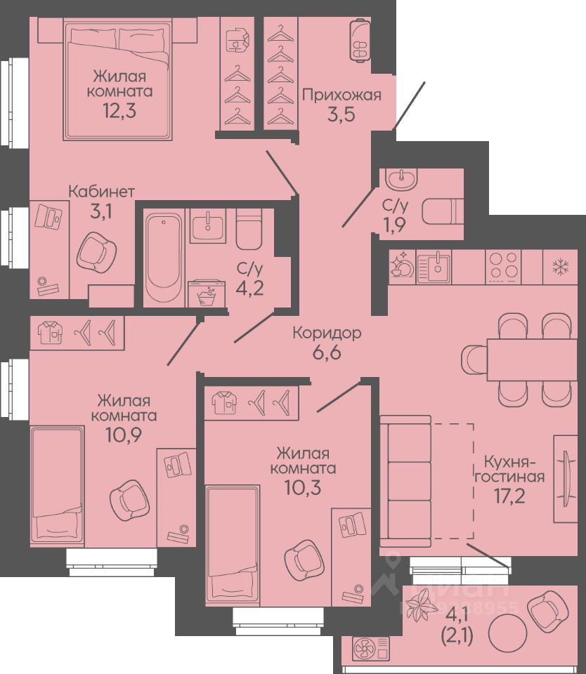 57 м² · Этаж 3 из 19