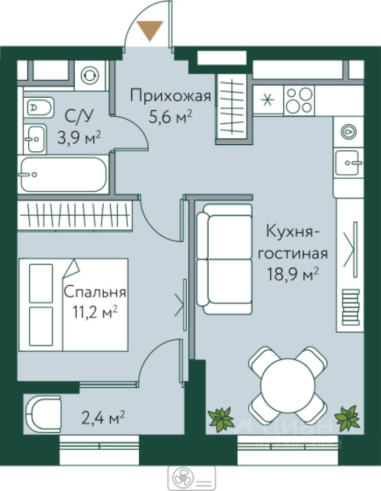 42 м² · Этаж 9 из 24
