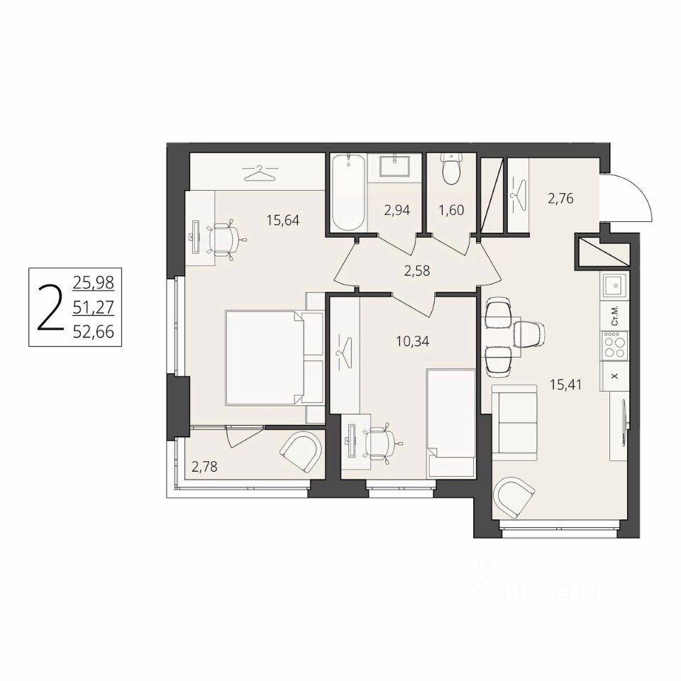 52 м² · Этаж 2 из 17