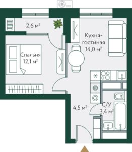 44 м2
