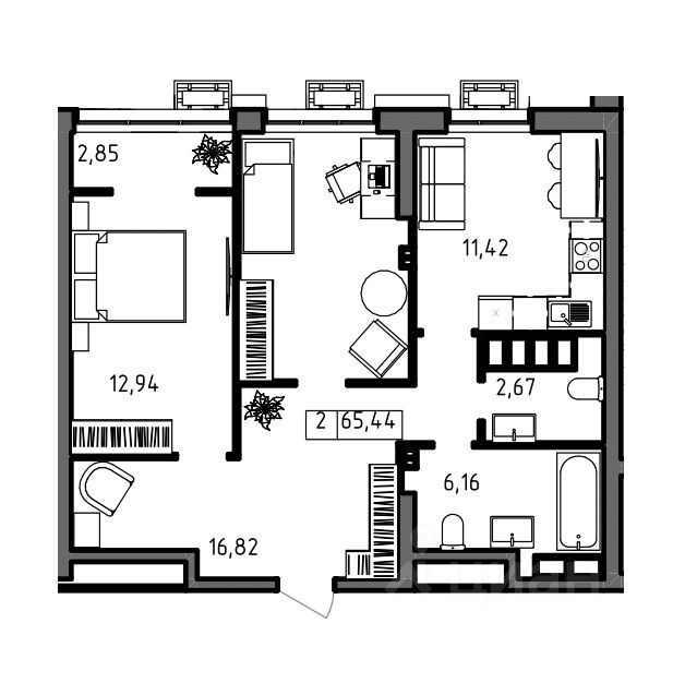 65 м² · Этаж 19 из 23