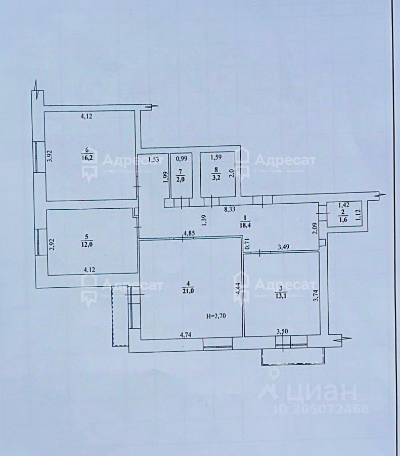 Жилая площадь:49,2кв.м.