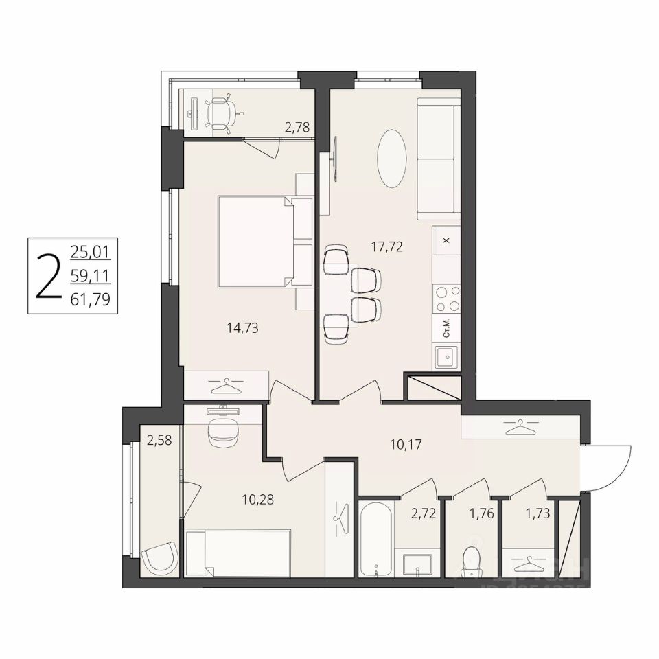 Общая площадь61,79 м2