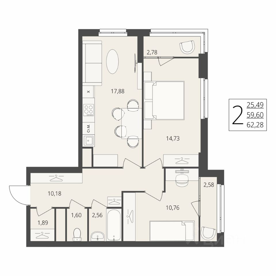 Общая площадь62,28 м2
