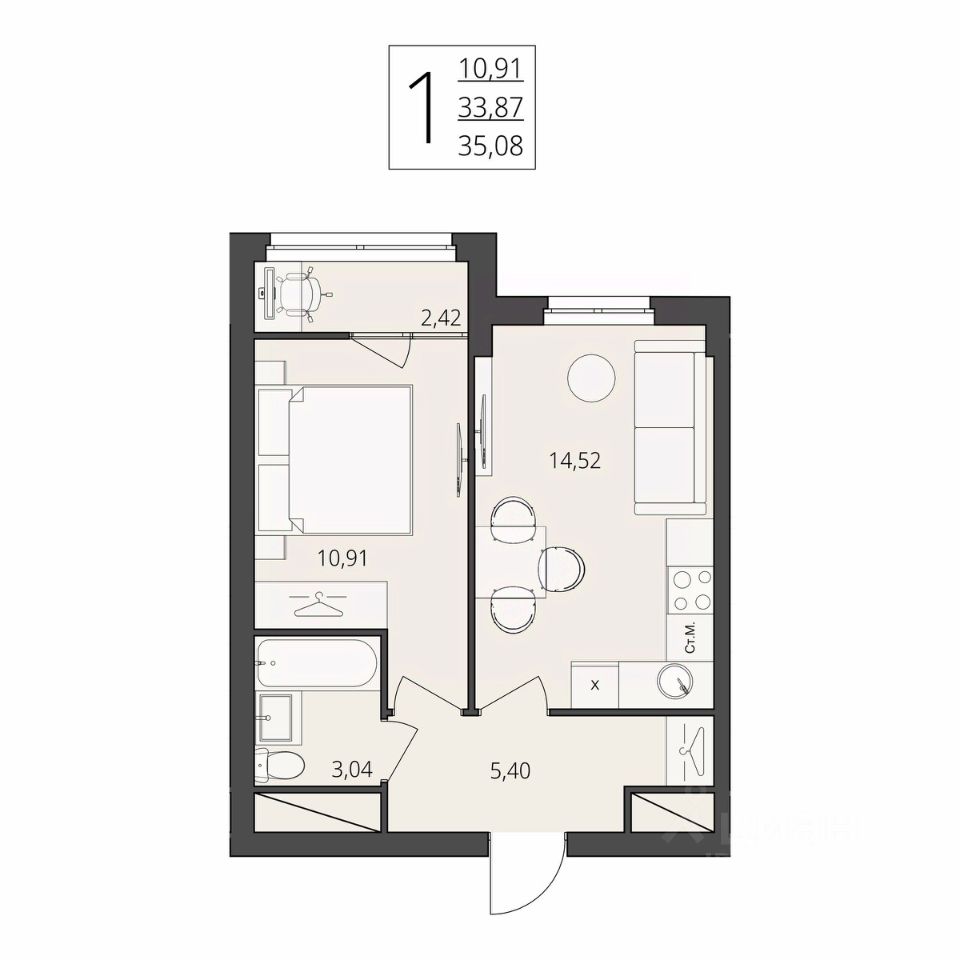 Общая площадь35,08 м2