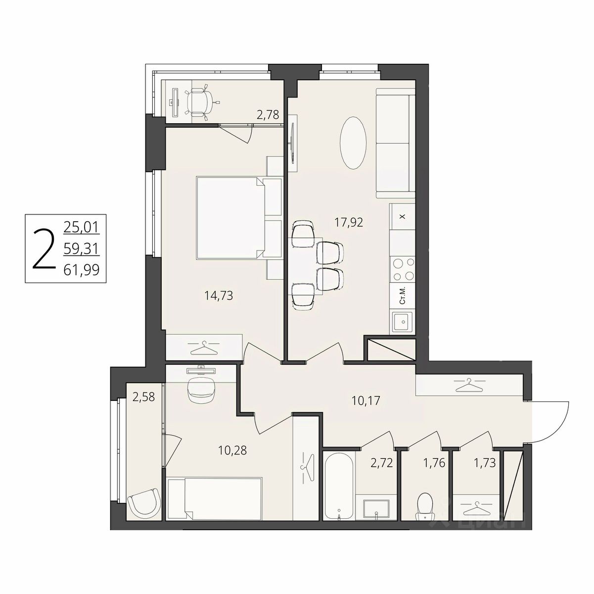 Общая площадь61,99 м2