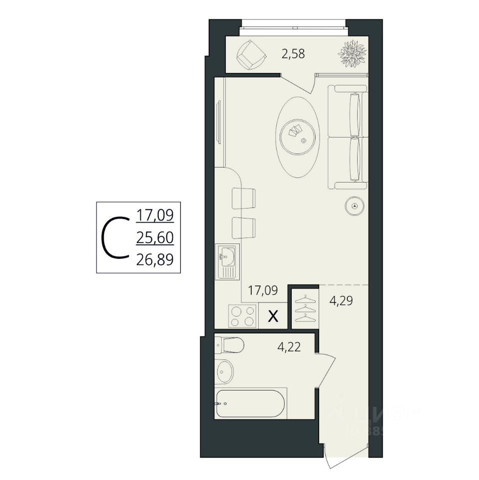 Общая площадь26,89 м2
