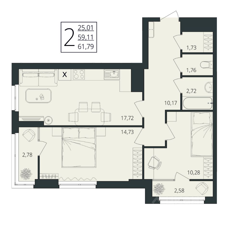 Общая площадь61,79 м2