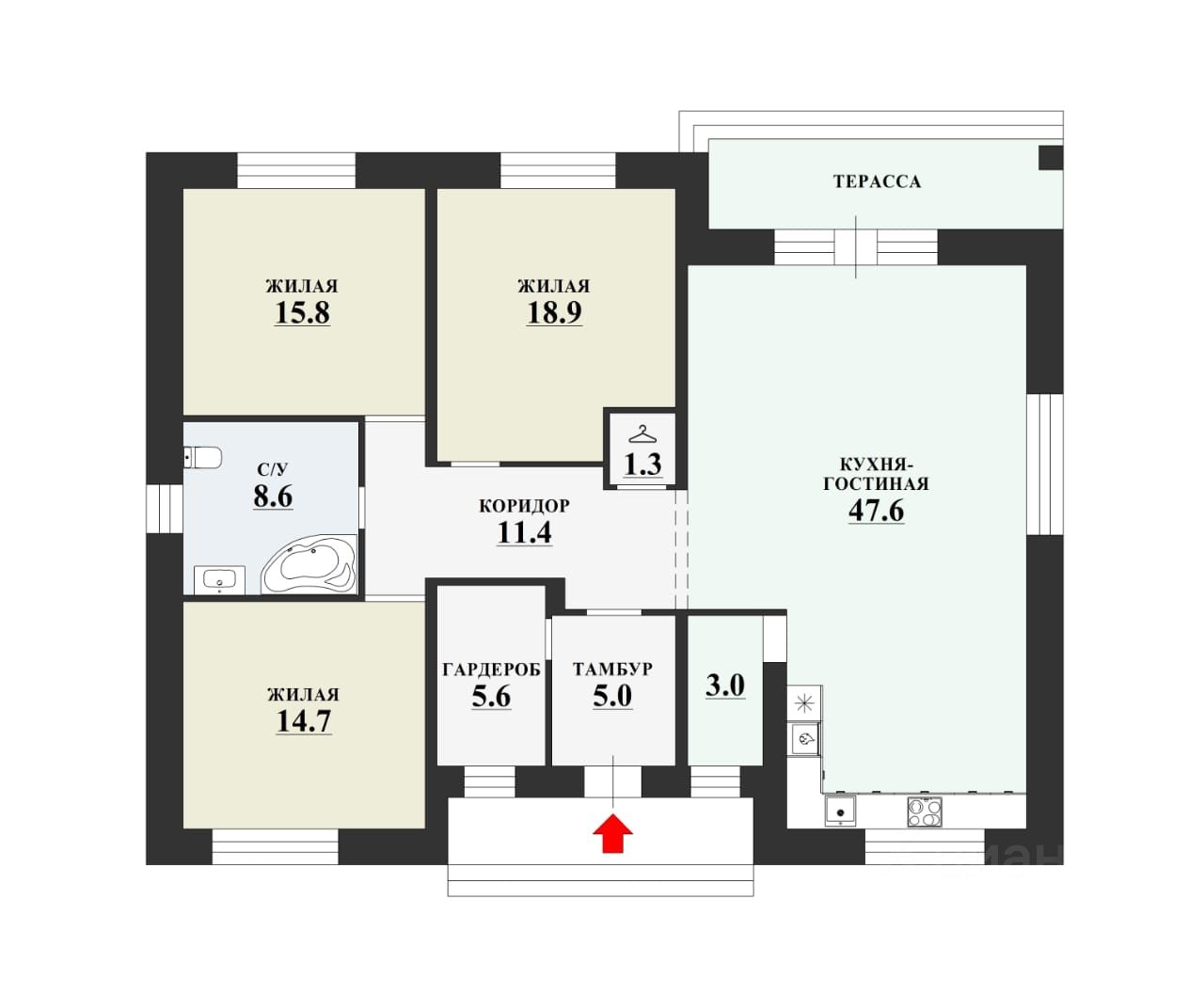 ### Планировка и жилые помещения: - Три изолированные спальни — комфорт для всей семьи. - Просторная кухня-столовая площадью 47 кв.м — отличное место для семейных ужинов и встреч с друзьями. - Два санузла — удобно и практично.