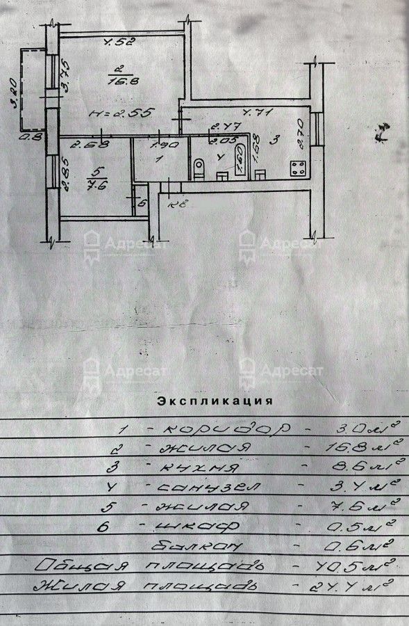 Квартира общей плoщaдью 40,5 кв. м.