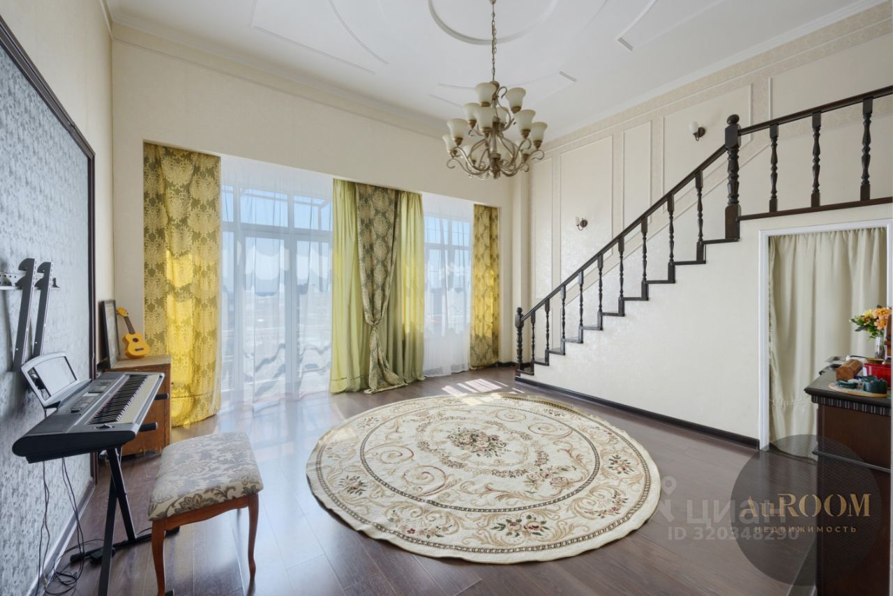 В квартире 2 изолированных спальни 13,2 и 10 кв.м.,просторная кухня-столовая 39,4 кв.м. с выходом на 2 застекленные лоджии,гостиная 39,4 с лестницей на второй этаж и выходом на балкон,а также вместительная гардеробная 11,3 кв.м.