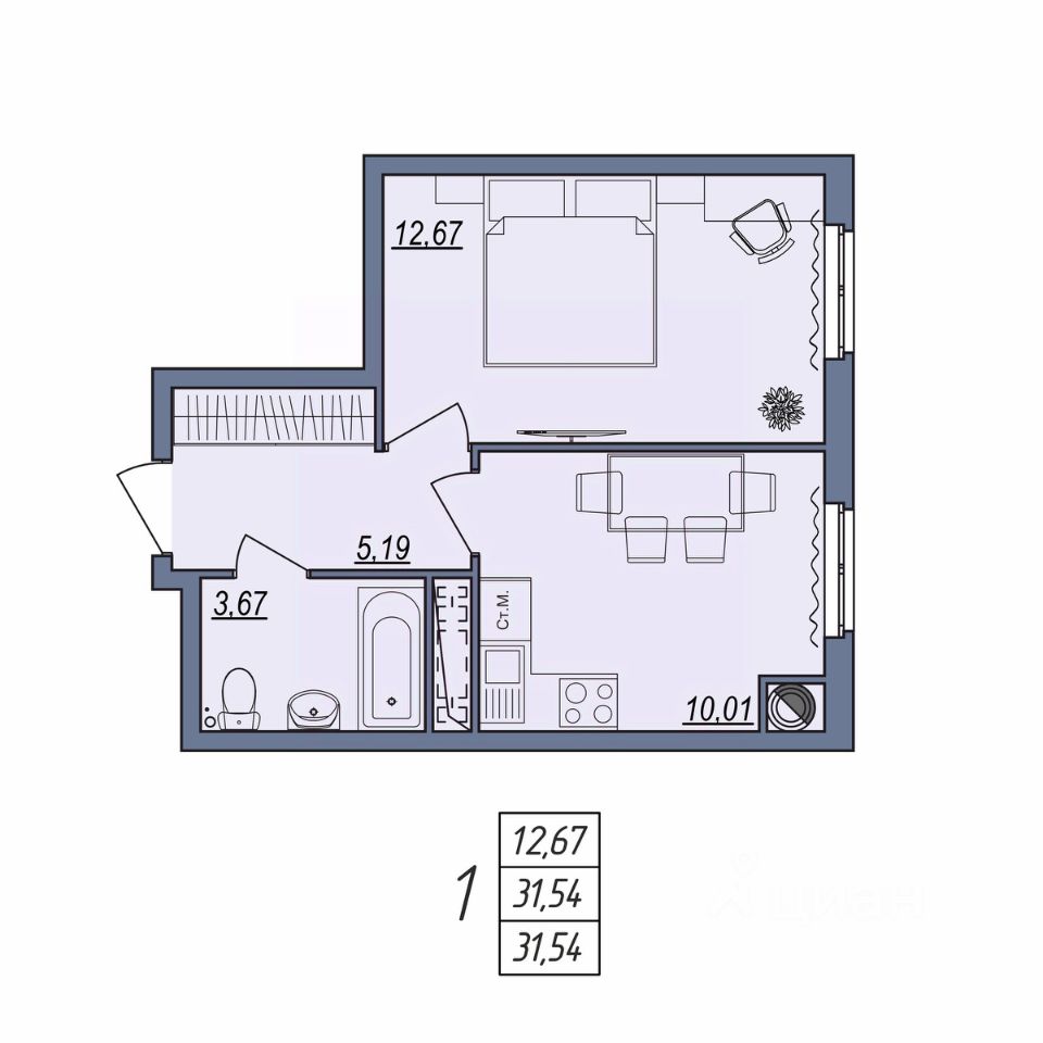 Общая площадь31,54 м2