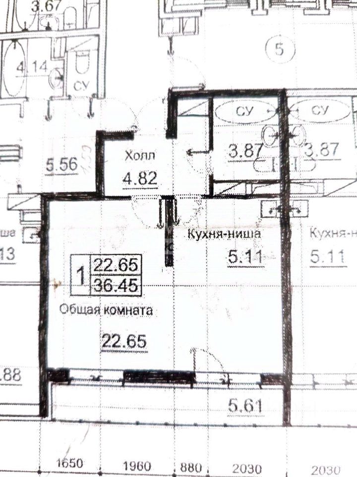 Особенности квартиры: Общая площадь: 36.45 м² Жилая площадь: 22.65 м² Кухня-ниша: 5,11 м² Санузел: 3,87 м² (совмещенный, выложен плиткой в светлых тонах) Лоджия: 5,61 м² (застеклённая)