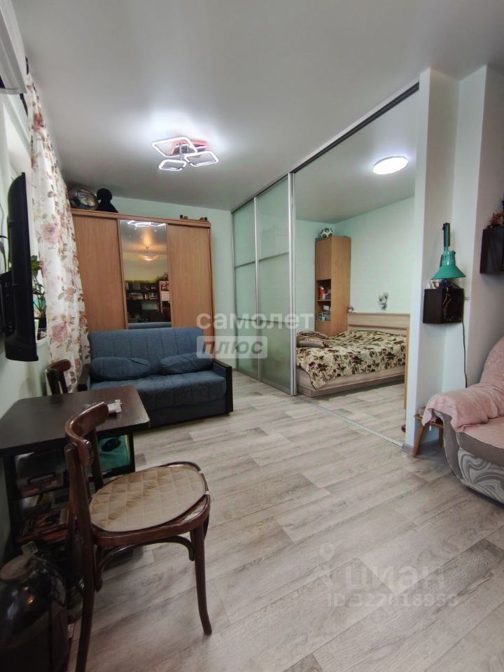 Планировка и ремонт: Эргономичная планировка с зонированием сдвижной перегородкой, обеспечивающая выделенное спальное место и просторную кухню-гостиную.