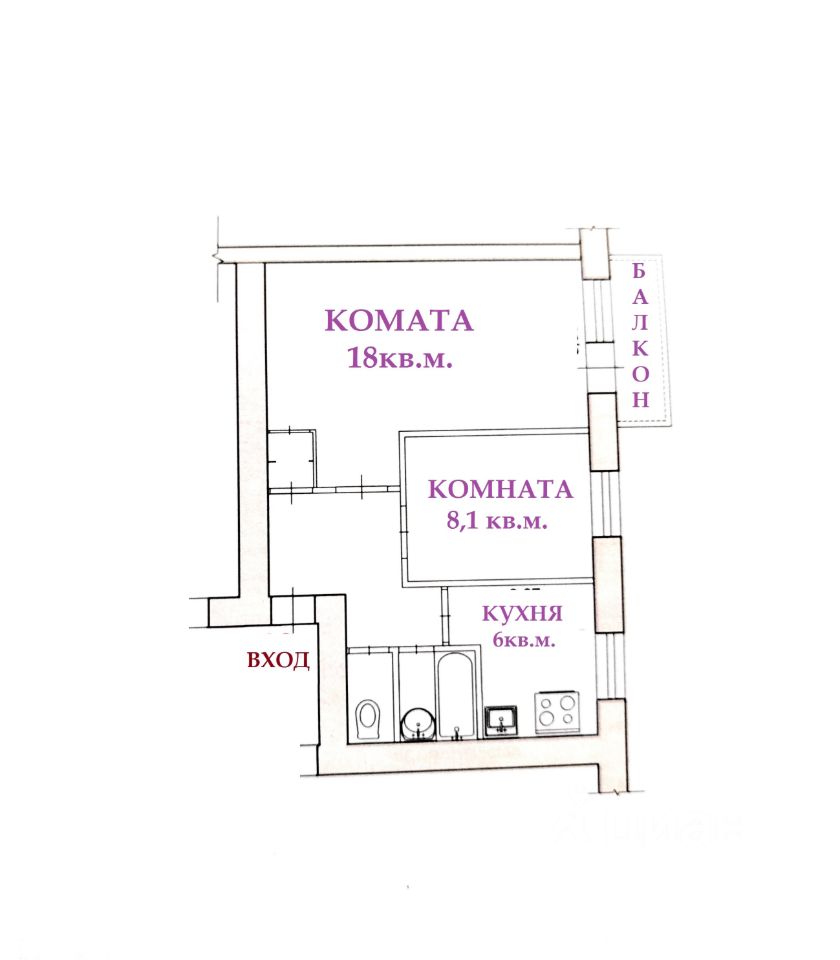 Общая площадь квартиры 41,5 кв.м., жилая площадь 26 кв.м., кухня 6 кв.м. В квартире: - изолированные комнаты (18+8), - евроокна, - санузел раздельный, - балкон застеклен. При продаже остается сплит система.