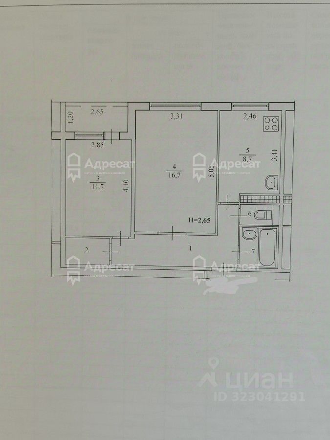 Общая площадь квартиры 50,5 кв.м.