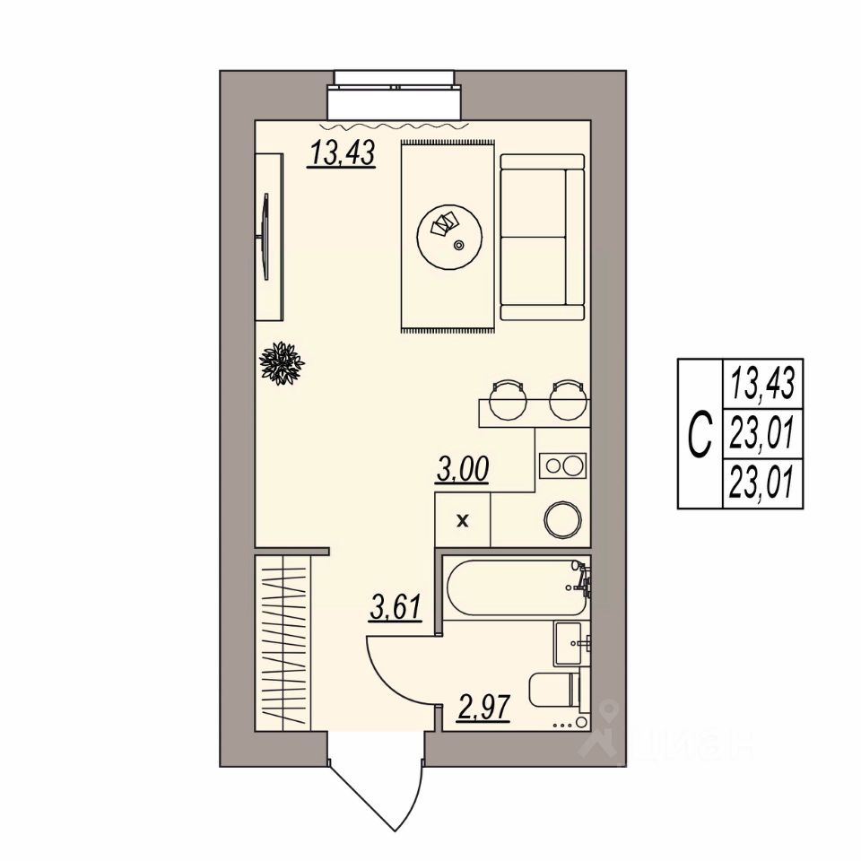 Общая площадь23,01 м2