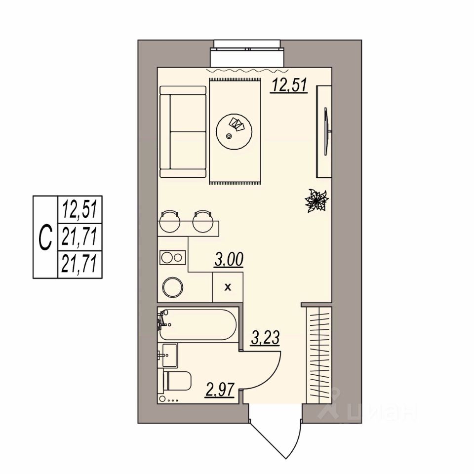 Общая площадь21,71 м2
