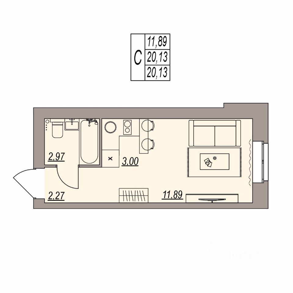 Общая площадь20,13 м2