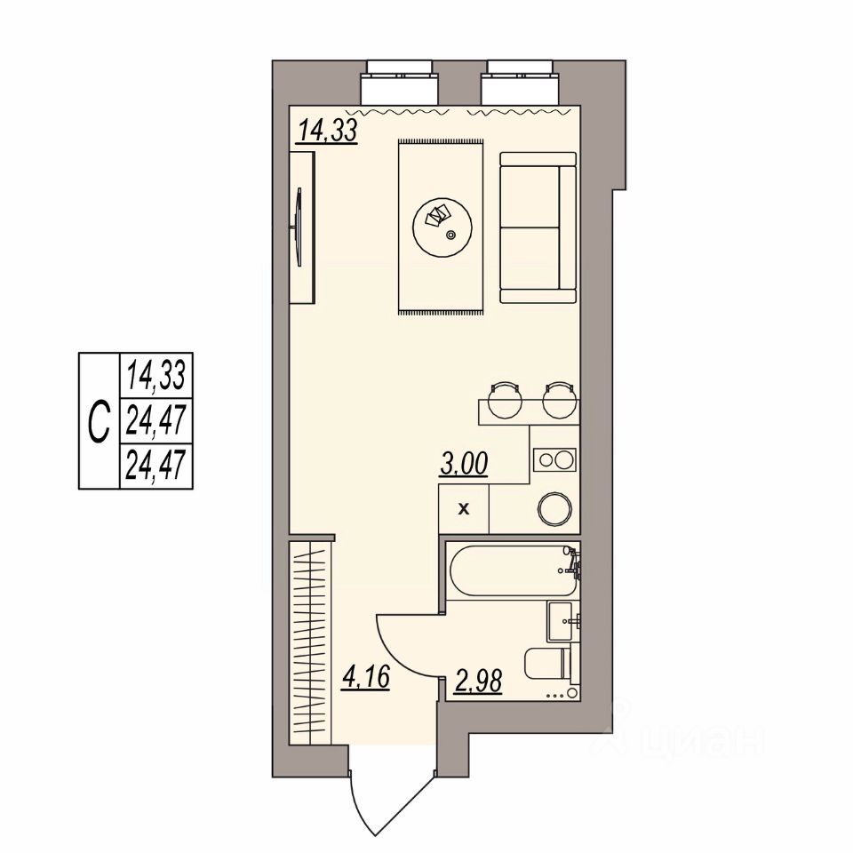 Общая площадь24,47 м2