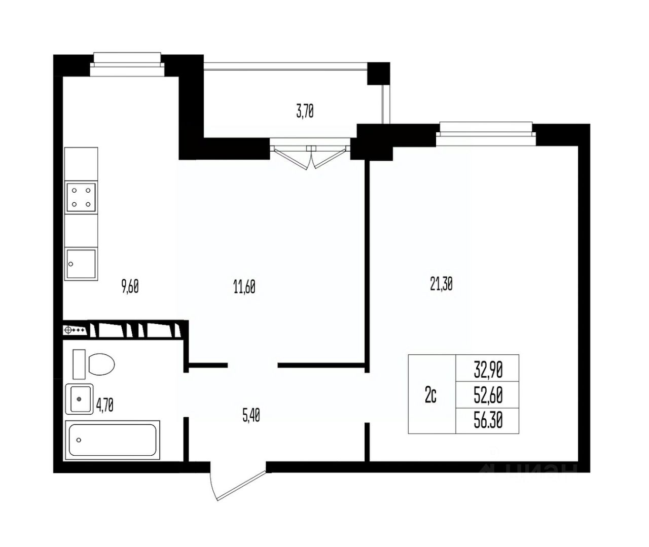 Общая площадь56,3 м2
