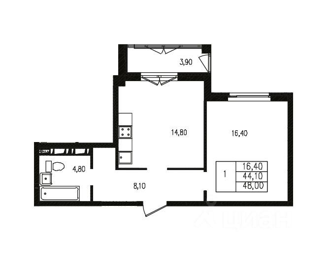 Общая площадь48 м2