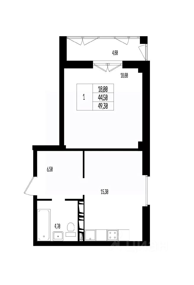 Общая площадь49,3 м2