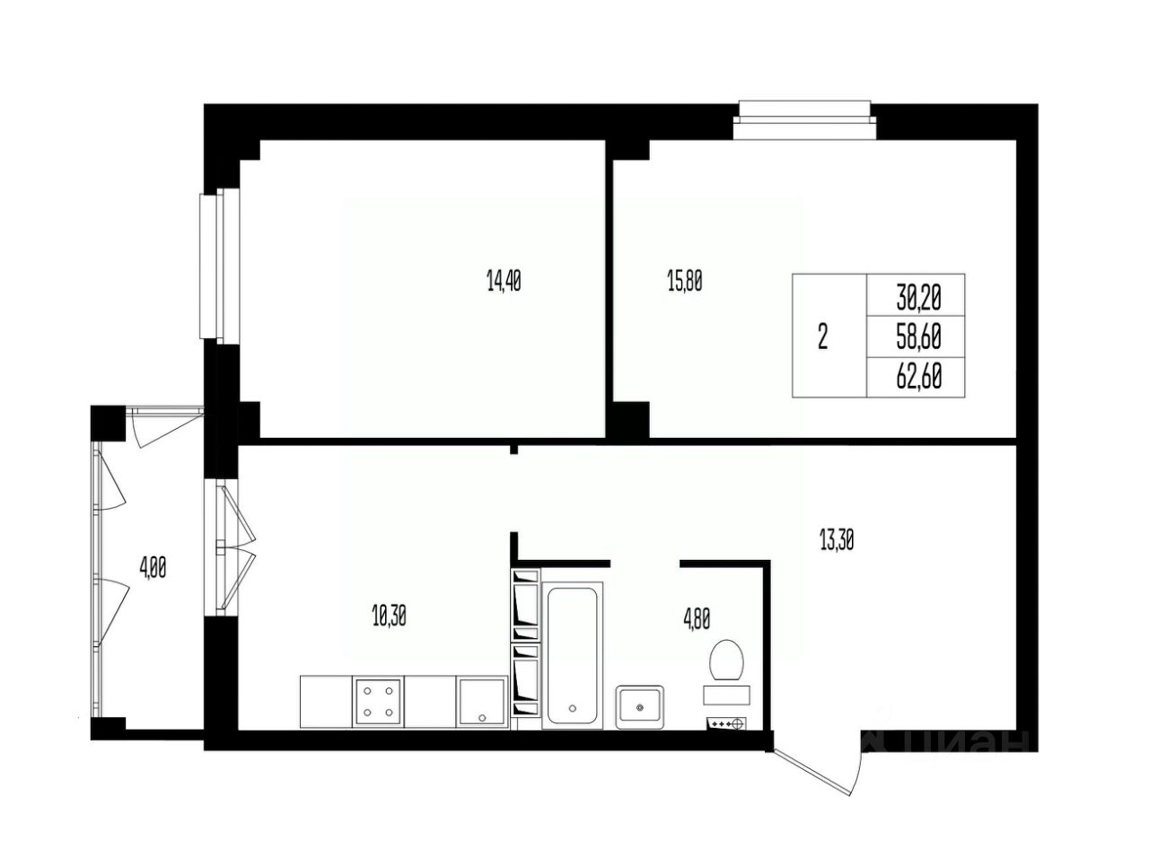 Общая площадь62,6 м2